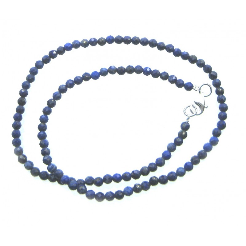 Kugel-Kette Lapislazuli facettiert 4 mm 45 cm lang 925er Silber