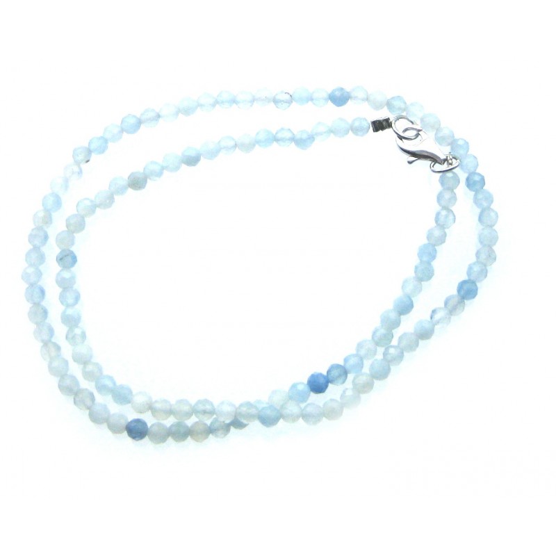 Kugel-Kette Mix Aquamarin Bergkristall facettiert 4 mm 45 cm lang 925 Silber