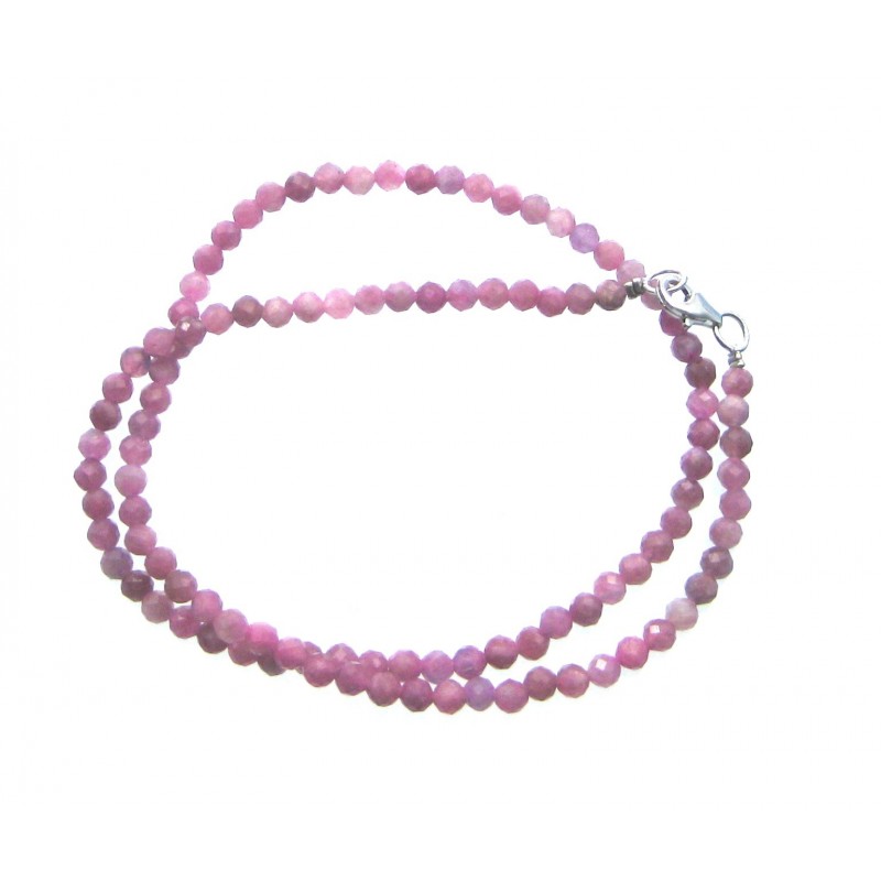 Kugel-Kette Turmalin rot Rubellit facettiert 4 mm 45 cm lang 925er Silber