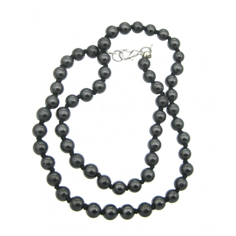 Kugel-Kette Schungit (Steinkohle) 6 mm 45 cm lang 925er Silber rhodiniert