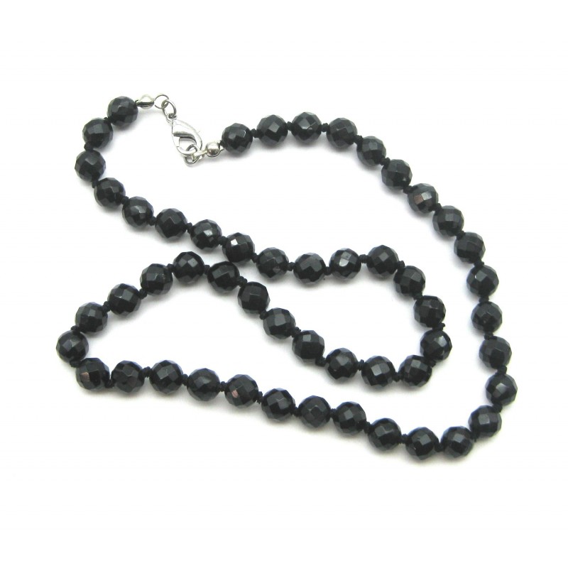 Kugel-Kette Turmalin schwarz stabilsiert facettiert 6 mm 45 cm lang Vergrößern