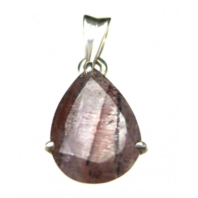 Anhänger Goehtitquarz facettiert Tropfen, 11x24 mm, Krampenfassung, 925er Silber