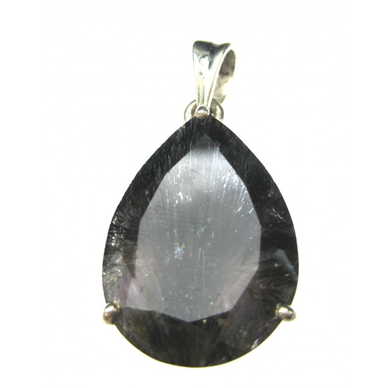 Anhänger Goethitquarz facettiert Tropfen, 17x35 mm, Krampenfassung, 925er Silber