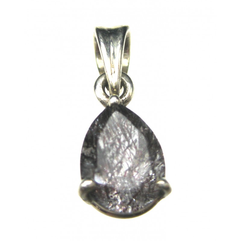 Anhänger Goethitquarz facettiert Tropfen, 8x20 mm, Krampenfassung, 925er Silber Vergrößern