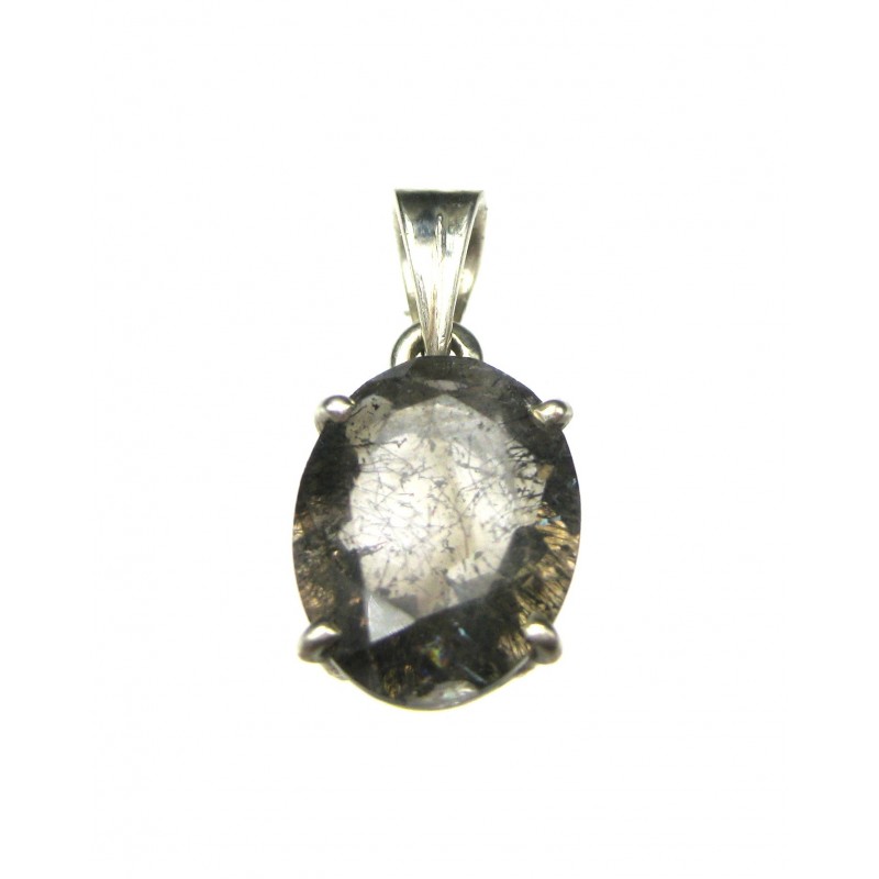 Anhänger Goethitquarz facettiert Oval, 10x22 mm, Krampenfassung, 925er Silber