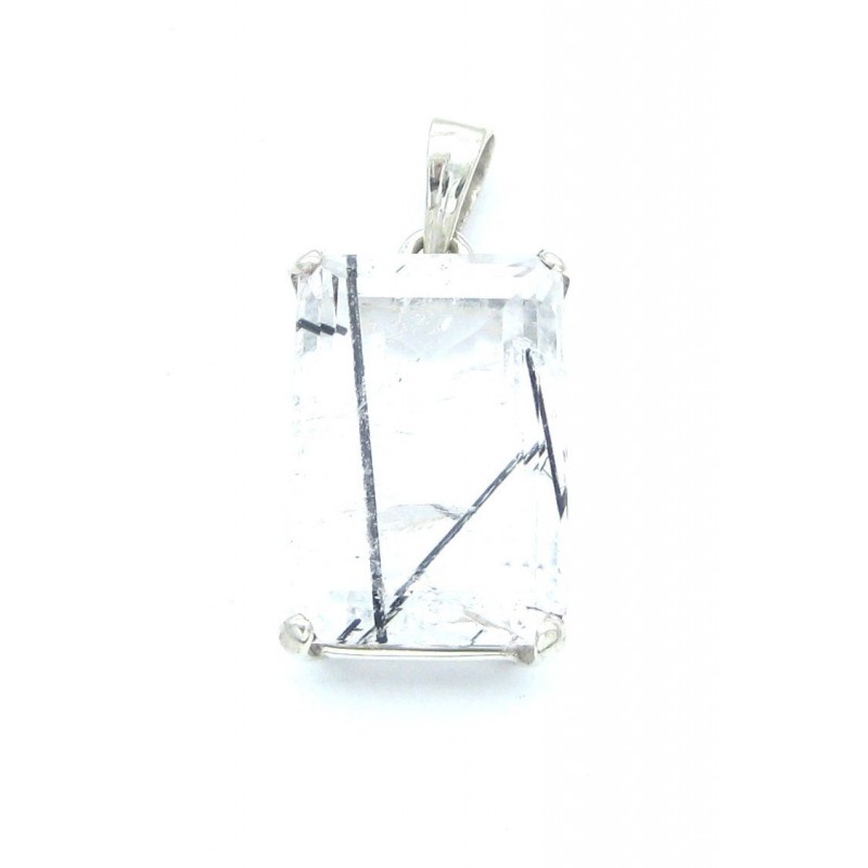 Anhänger Goethitquarz Rechteck facettiert, ca. 18x38 mm, 925er Silber