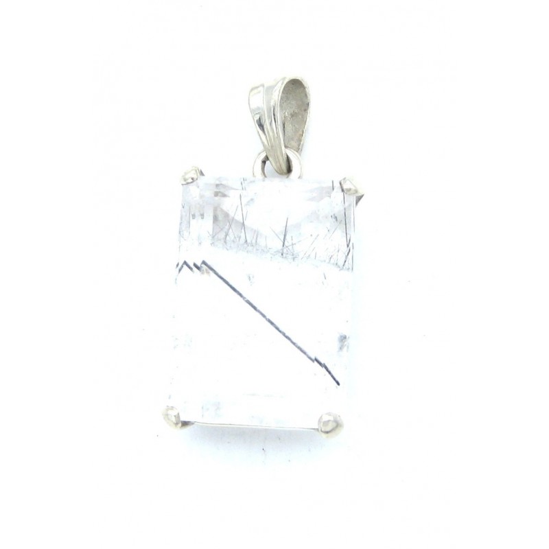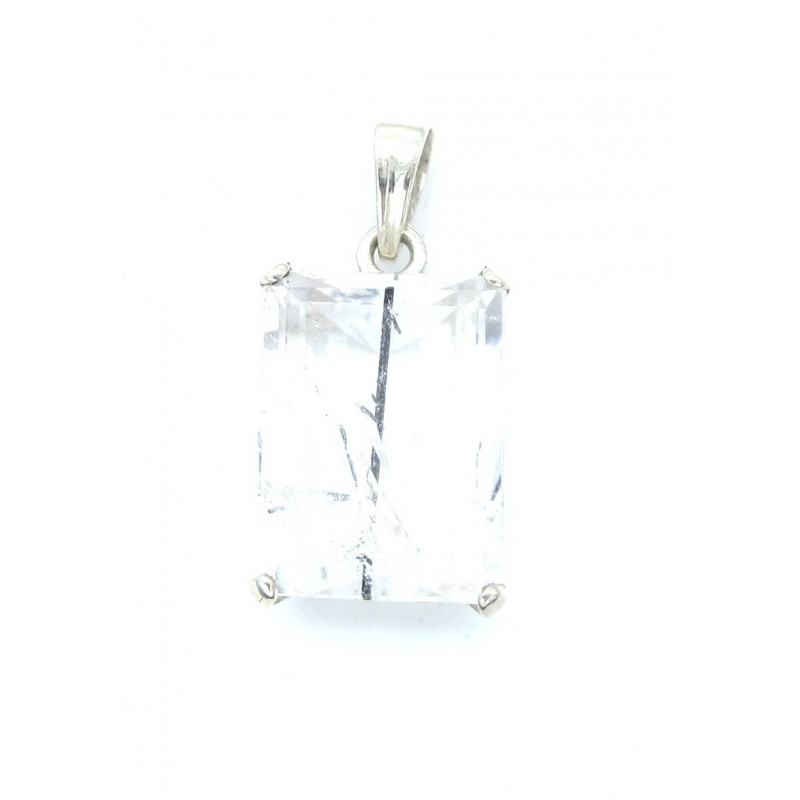 Anhänger Goethitquarz Rechteck facettiert, ca. 16x32 mm, 925er Silber