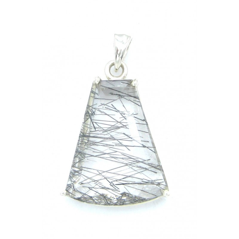 Anhänger Goethitquarz Trapez facettiert, 25x38 mm, 925er Silber