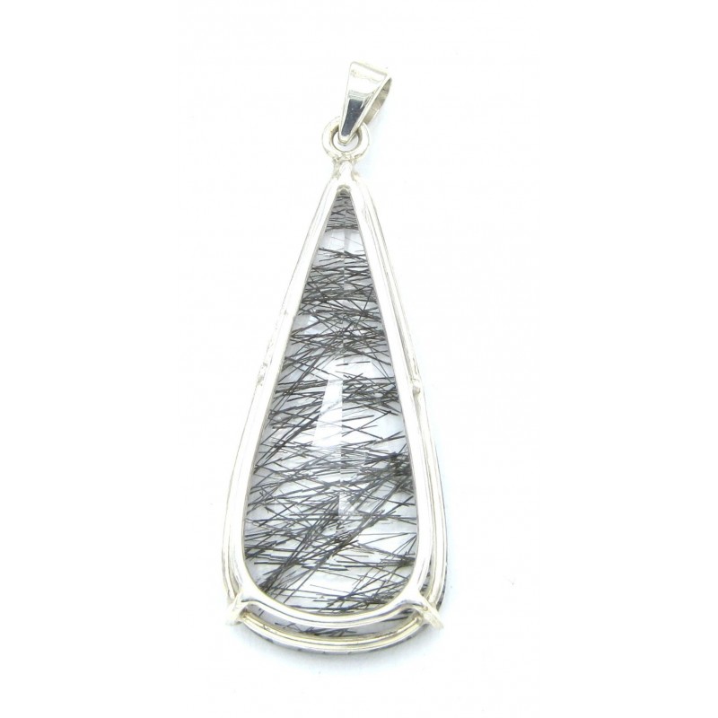 Anhänger Goethitquarz Tropfen facettiert, 23x64 mm, 925er Silber