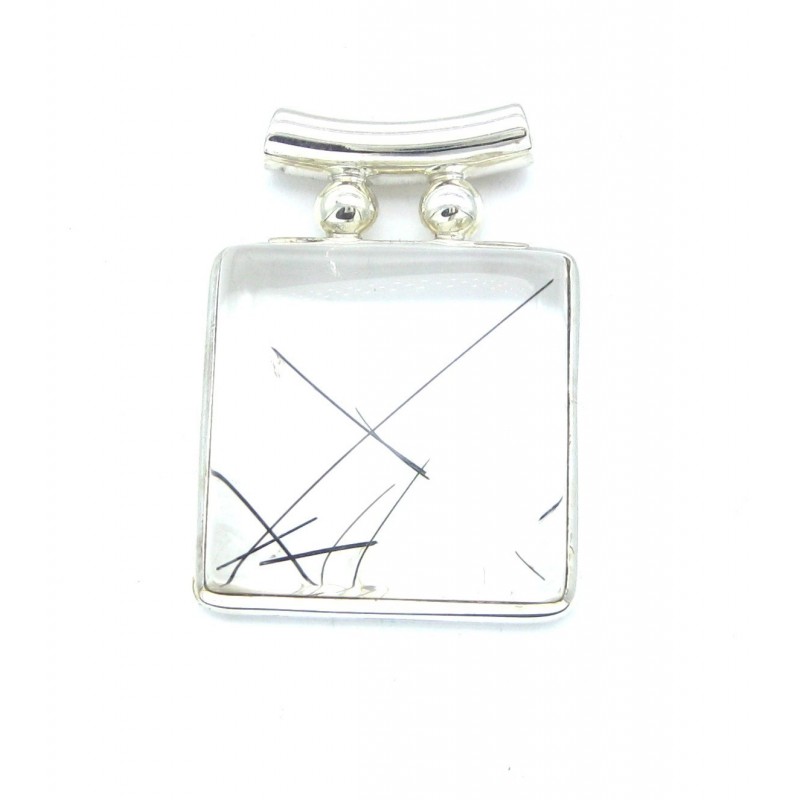 Anhänger Goethitquarz Pipe Quadrat, 34x44 mm, 925er Silber