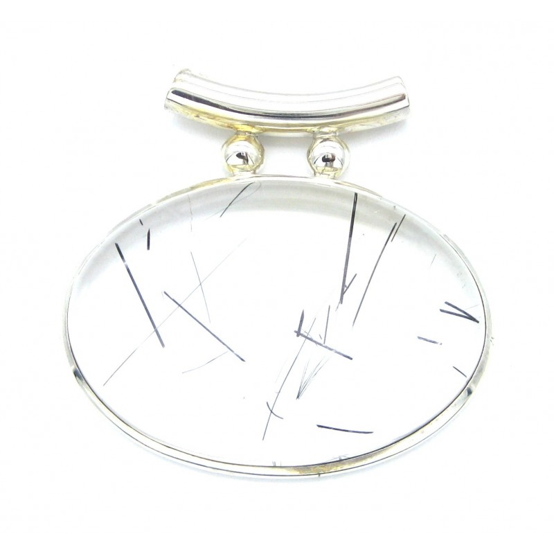 Anhänger Goethitquarz mit feinen Kristallen Pipe Oval, 56x51 mm, 925er Silber