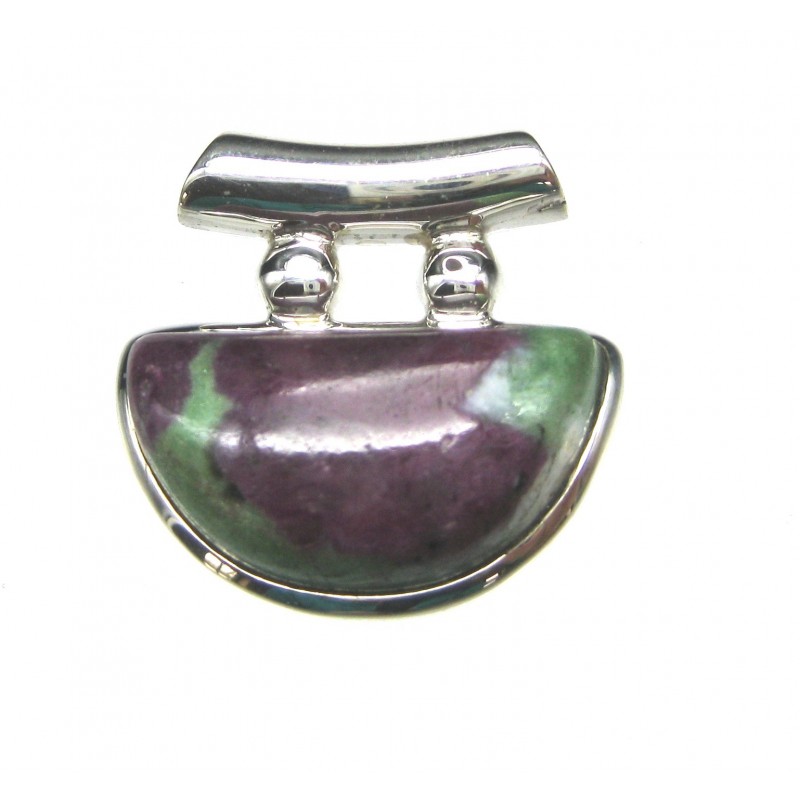 Anhänger Zoisit (Anyolith) mit Rubin Freeform, 24x24 mm, Pipe, 925er Silber