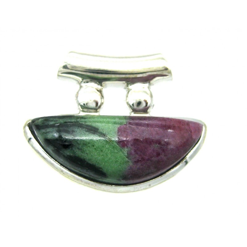 Anhänger Zoisit (Anyolith) mit Rubin Freeform, 27x21 mm, Pipe, 925er Silber