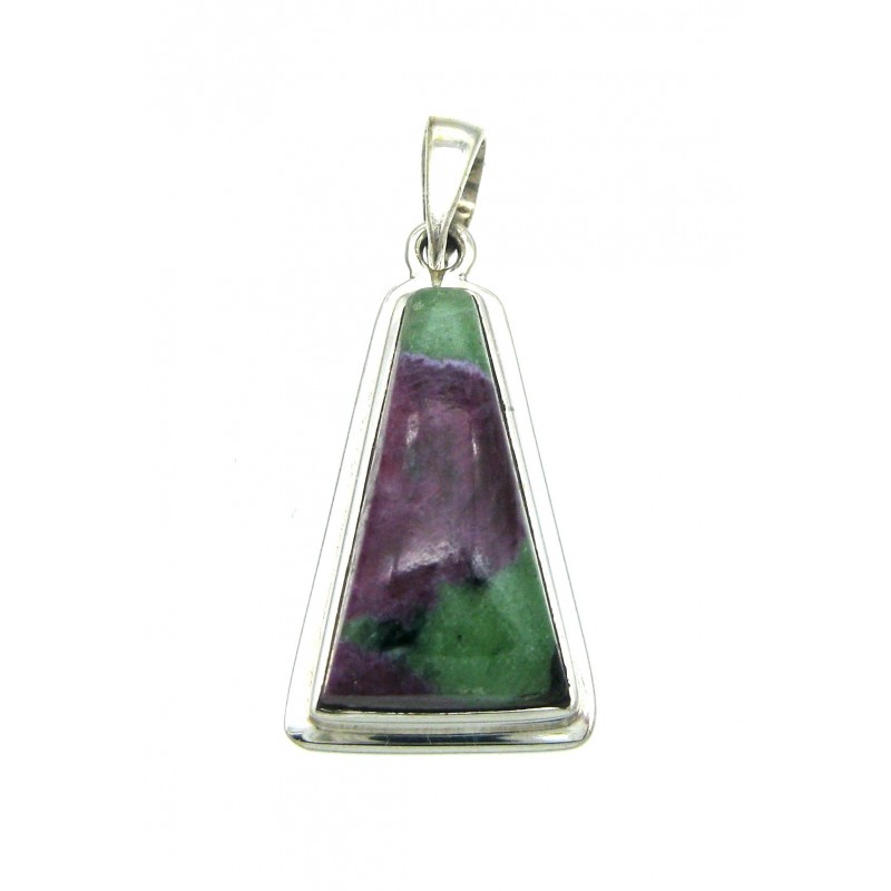 Anhänger Zoisit (Anyolith) mit Rubin Freeform, 17x38 mm, 925er Silber