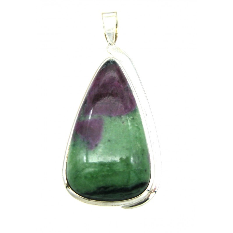 Anhänger Zoisit (Anyolith) mit Rubin Tropfen, 24x55 mm, feste Öse, Schlaufenform, 925er Silber