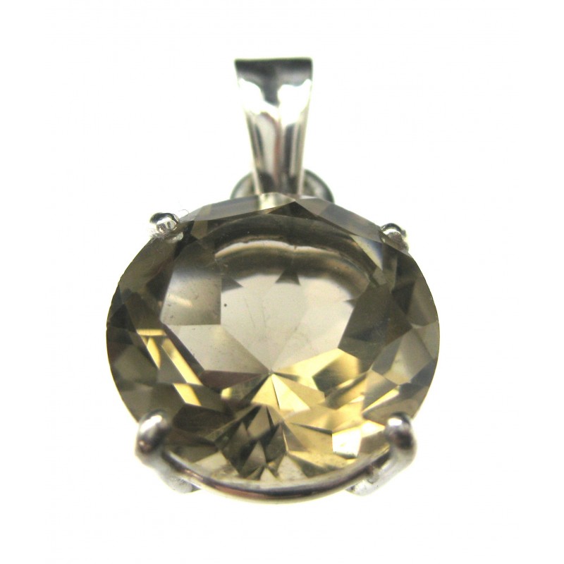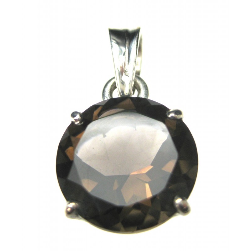 Anhänger Rauchquarz facettiert Kreis, 12x23, Krampenfassung, 925er Silber