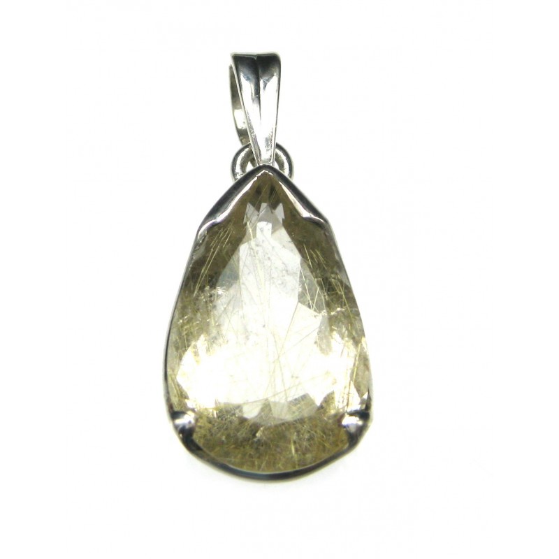 Anhänger Rutilquarz facettiert Tropfen, 15x33 mm, Krampenfassung, 925er Silber