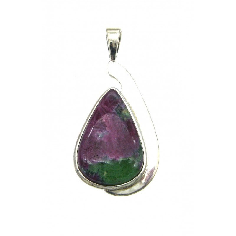 Anhänger Zoisit (Anyolith) mit Rubin Tropfen, 22x45 mm, feste Öse, Schlaufenform, 925er Silber
