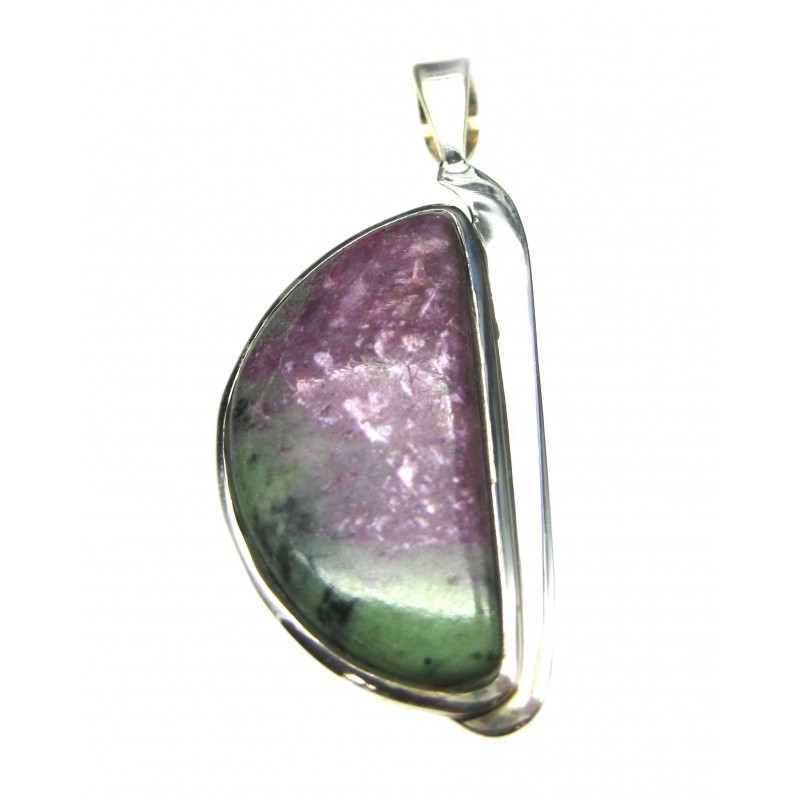 Anhänger Zoisit (Anyolith) mit Rubin Halbkreis, 20x49 mm, feste Öse, Schlaufenform, 925er Silber