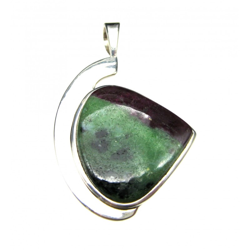 Anhänger Zoisit (Anyolith) mit Rubin Freeform, 29x47 mm, feste Öse, Schlaufenform, 925er Silber