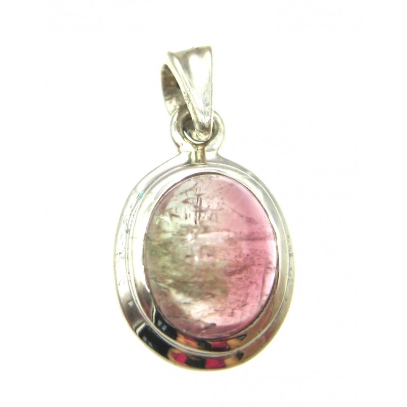 Anhänger Turmalin hellrot/ hellgrün Oval, 12x22 mm, 925er Silber