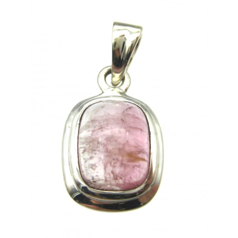 Anhänger Turmalin hellrot Rechteck abgerundet, 12x23 mm, 925er Silber