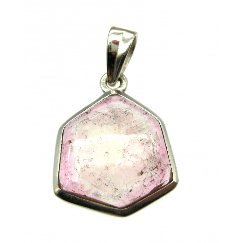 Anhänger Turmalin hellrot Sechseck/ Freeform, 18x28 mm, 925er Silber