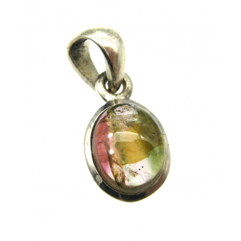 Anhänger Turmalin hellgrün mit rot Oval, 9x20 mm, 925er Silber