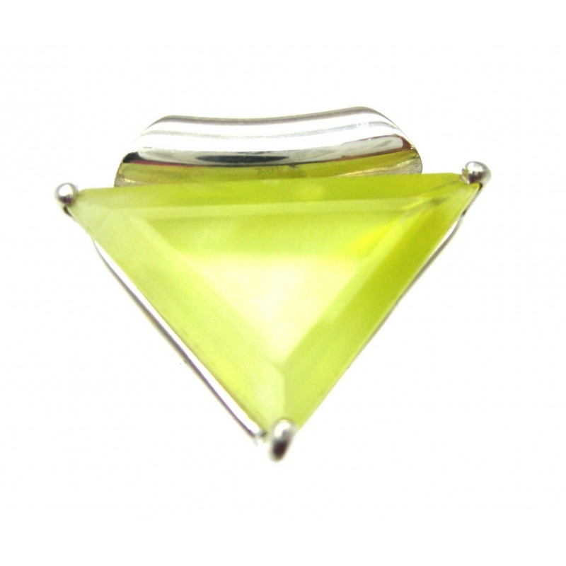 Anhänger Prehnit limone facettiert Dreieck, 26x23 mm, Krampenfassung, Pipe, 925er Silber