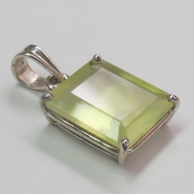Anhänger Prehnit limone facettiert Rechteck, 14x27 mm, Krampenfassung, 925er Silber