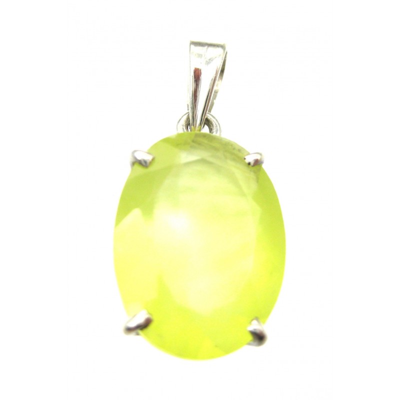 Anhänger Prehnit limone facettiert Oval, 18x30 mm, Krampenfassung, 925er Silber