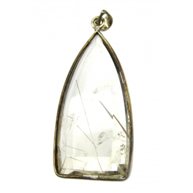 Anhänger Rutilquarz facettiert Freeform, 15x38 mm, 925er Silber