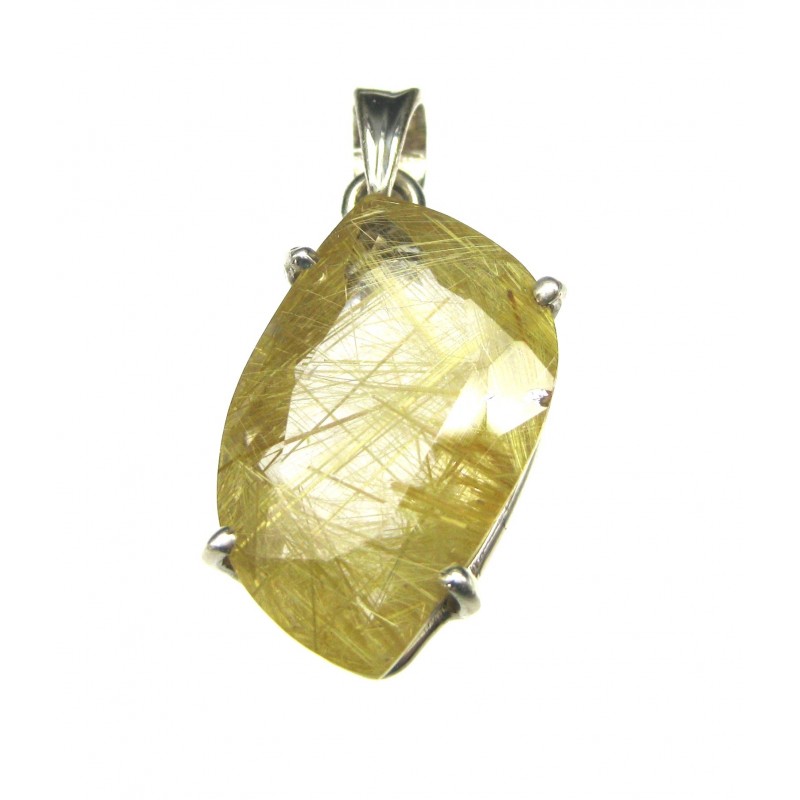 Anhänger Rutilquarz facettiert Freeform, 15x35 mm, Krampenfassung, 925er Silber Vergrößern