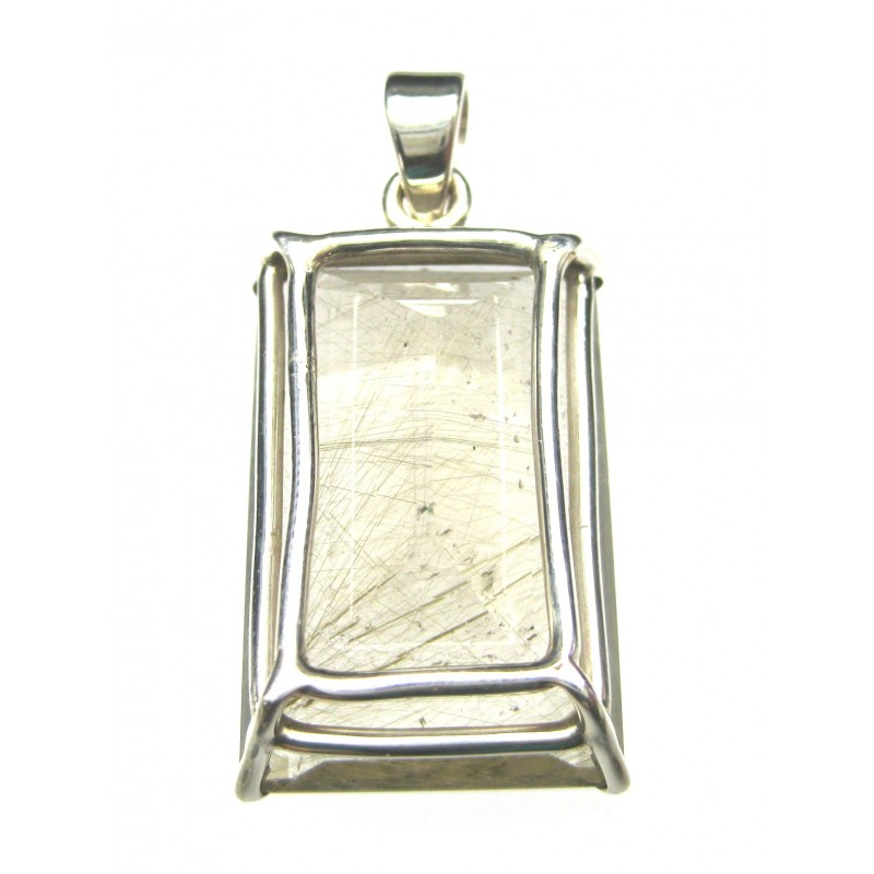 Anhänger Rutilquarz facettiert Rechteck, 17x40 mm, Krampenfassung, 925er Silber