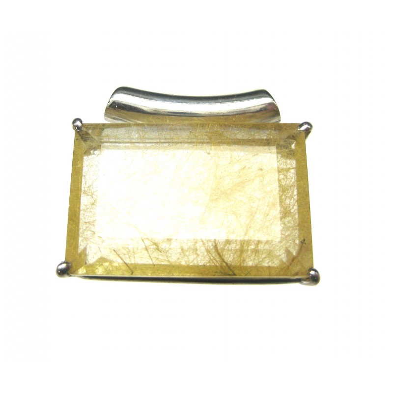Anhänger Rutilquarz facettiert Rechteck, 27x24 mm, Pipe, Krampenfassung, 925er Silber