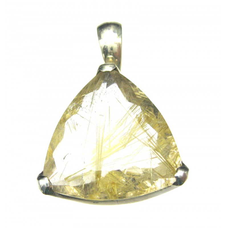 Anhänger Rutilquarz facettiert Dreieck, Seiten gerundet, 21x32 mm, Krampenfassung, 925er Silber Vergrößern