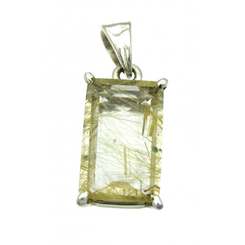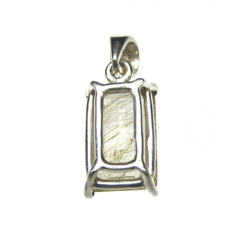 Anhänger Rutilquarz facettiert Rechteck, 10x25 mm, Krampenfassung, 925er Silber