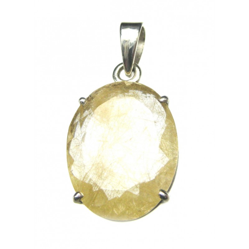 Anhänger Rutilquarz facettiert Oval, 16x33 mm, Krampenfassung, 925er Silber