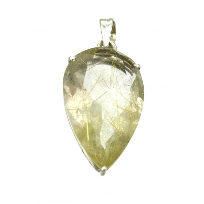 Anhänger Rutilquarz facettiert Tropfen, 16x39 mm, Krampenfassung, 925er Silber