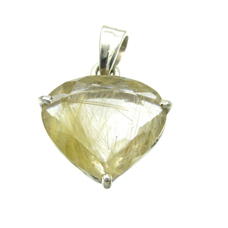 Anhänger Rutilquarz facettiert Dreieck, Seiten gerundet, 20x27 mm, Krampenfassung, 925er Silber