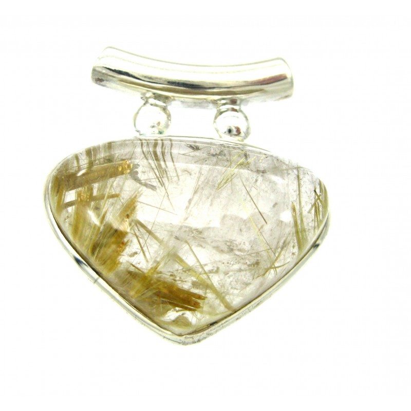 Anhänger Rutilquarz Dreieck, abgerundet, 33x35 mm, Pipe, 925er Silber