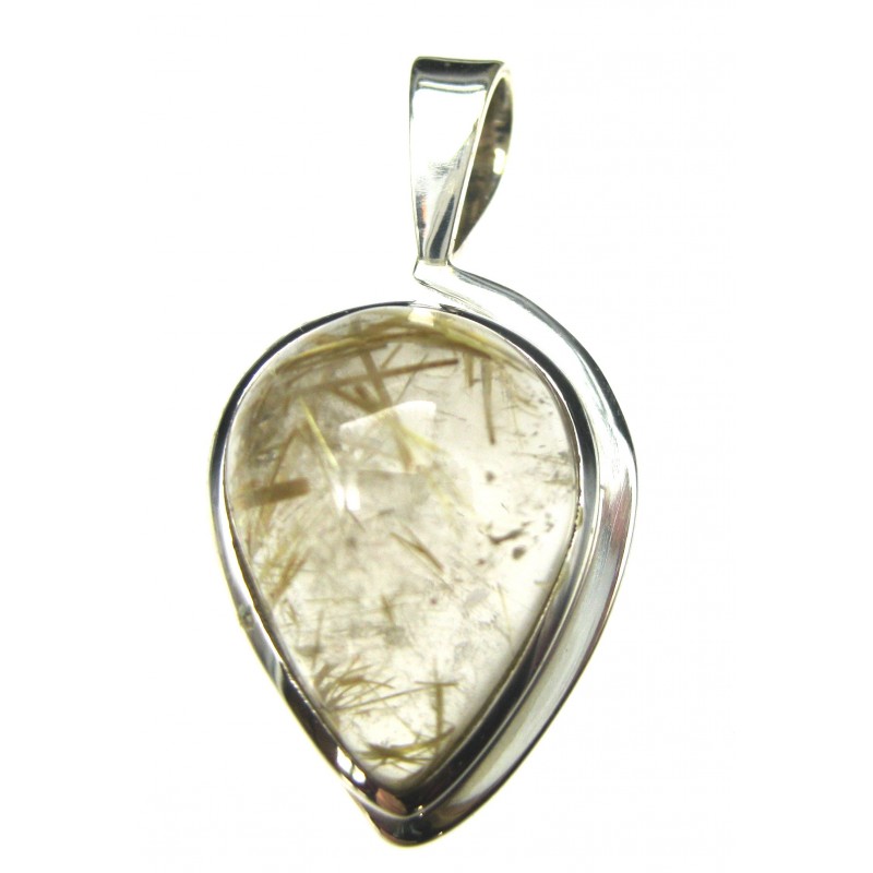 Anhänger Rutilquarz Tropfen, 19x36 mm, feste Öse, 925er Silber