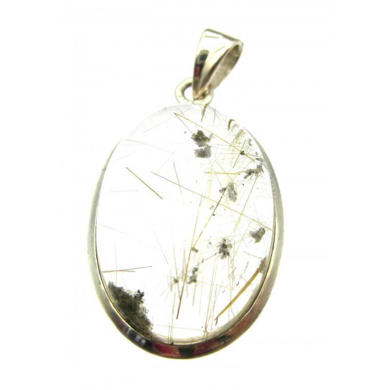 Anhänger Rutilquarz Oval, 20x39 mm, 925er Silber