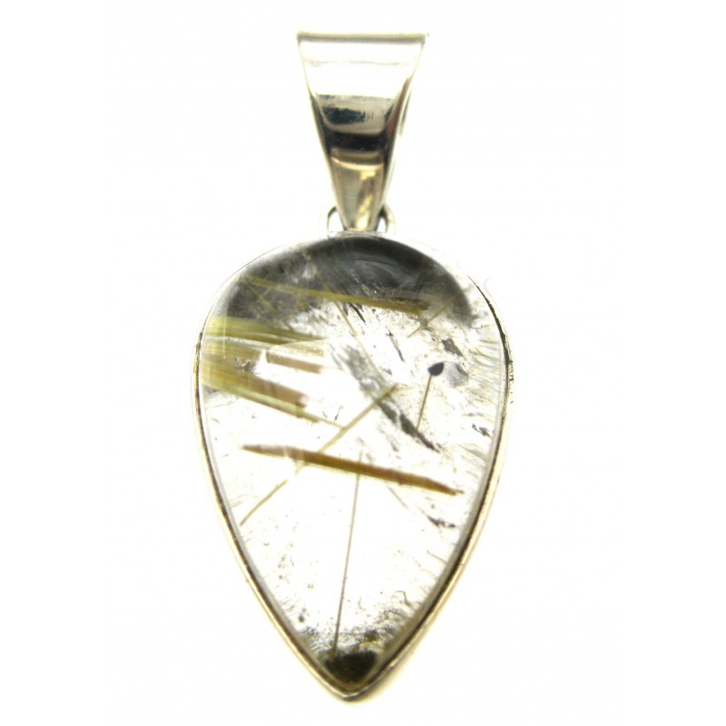 Anhänger Rutilquarz Tropfen, 16x38 mm, 925er Silber