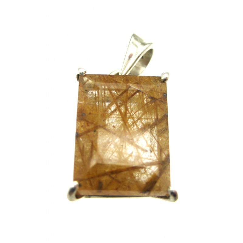 Anhänger Rutilquarz facettiert Rechteck, 11x16 mm, Krampenfassung, 925er Silber
