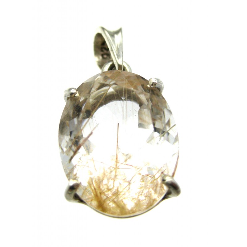 Anhänger Rutilquarz facettiert Oval, 13x27 mm, Krampenfassung, 925er Silber
