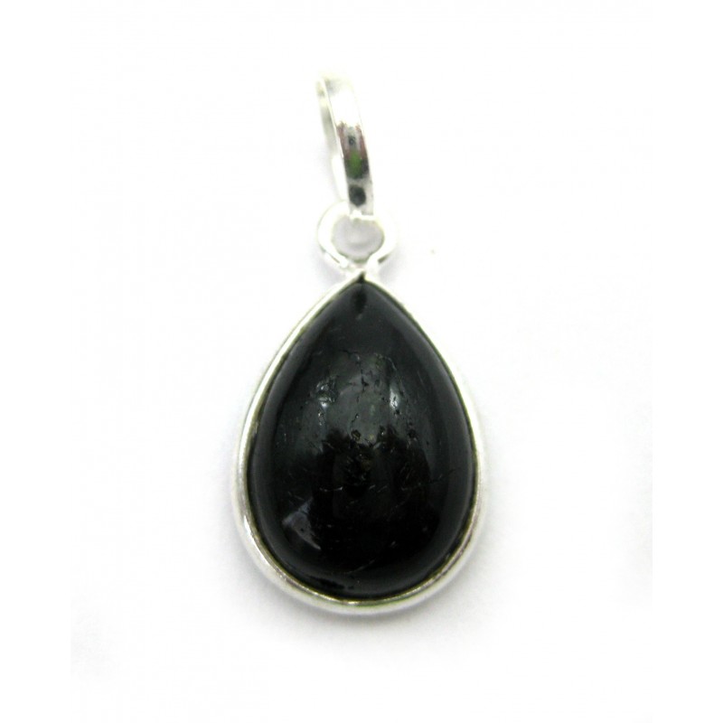 Anhänger Tropfen schwarzer Turmalin 10 x 25 mm 925er Silber