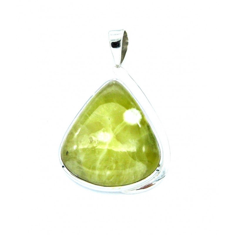 Anhänger Prehnit Tropfen 18x43 mm 925er Silber