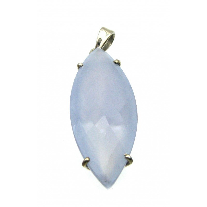 Anhänger Chalcedon blau facettiert Navette, 18x50 mm, 925er Silber