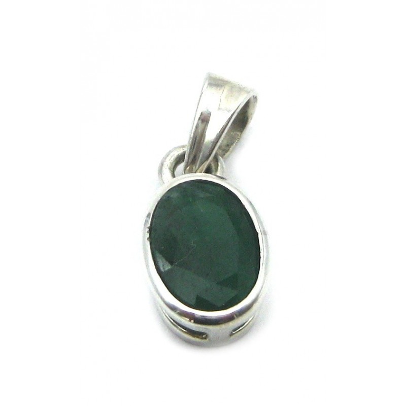 Anhänger Smaragd facettiert oval, 10x20 mm, 925er Silber